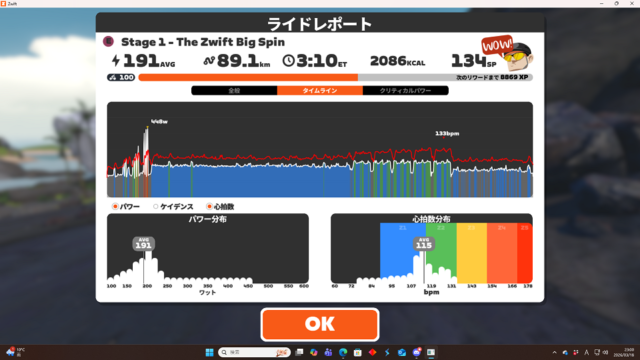 Zwift 高強度後のZ2。BigSpinステージ1完。2026.3.19~20