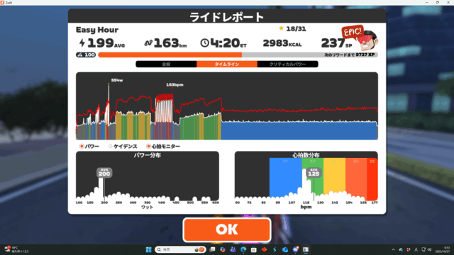 Zwift 火水Z2脂質酸化。2025.10.28~29