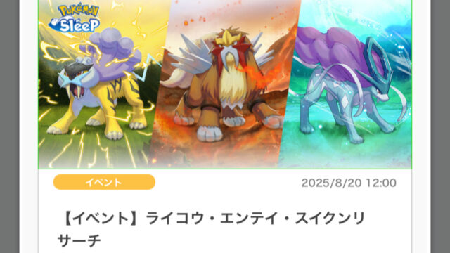 ポケモンスリープ 【週刊ポケスリ】伝説リサーチ(3犬イベント)inワカクサEX【112&113週目】 こんにちは!ポケモンスリーパーのコーヤマです! ここ2週間、ポケスリ的には結構盛り上がる大型イベント「伝説リサー... 2025.09.23 ポケモンスリープ