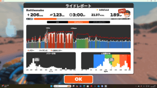 仮に本番も同じパワーで走ることができれば似たようなタイムになる可能性はありますが、本番は同じように踏むとパワーが平均10%前後は落ちます(高地のため)。
