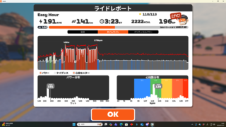天気がいいので今季初実走にしてもよかったが、LT以上の強度でトレーニングしたかったのでZwiftにした。実走一発目でいきなり強度を上げるのは少し怖いため確実性を取った。明日はむちゃくちゃ雨予報。伊吹山参加者にはキビシーね…てか中止あるで。