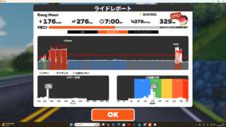 この環境としては悪くないんじゃないかな。SSTというにはちょっと高めかもしれないけど無理なく刻んでいるのでヨシ。※実走時はFTP設定5W下げているが環境要因のおかげでマジで実力が不明w