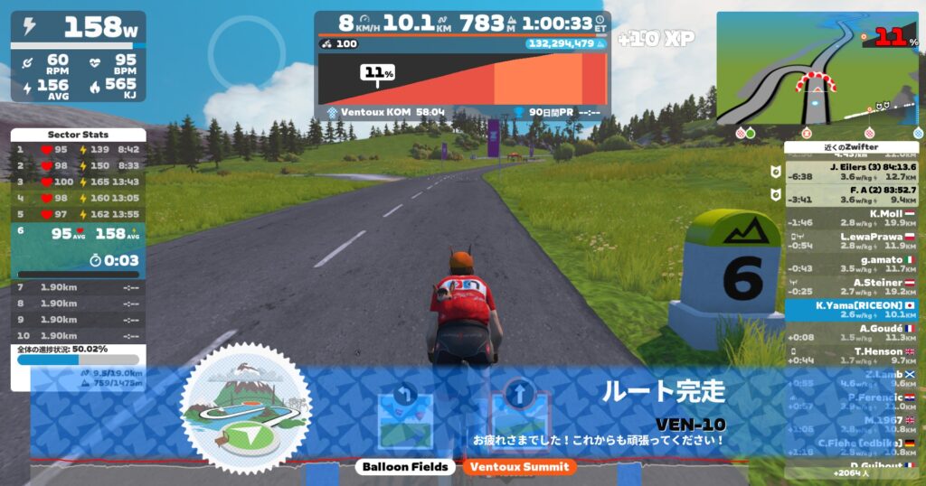乗り換えて2hまで漕いでフリーフォール。放置してシャワー浴びて戻ってきたけどまだ下ってたわw