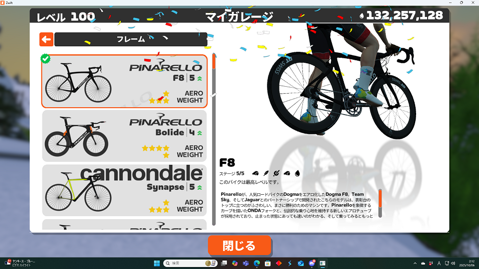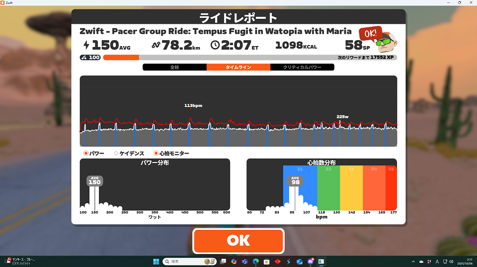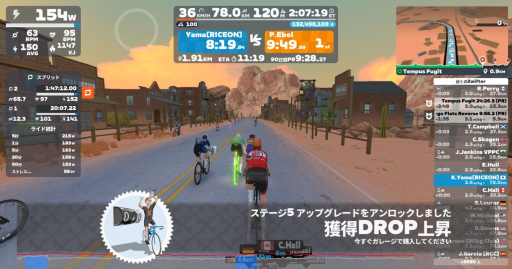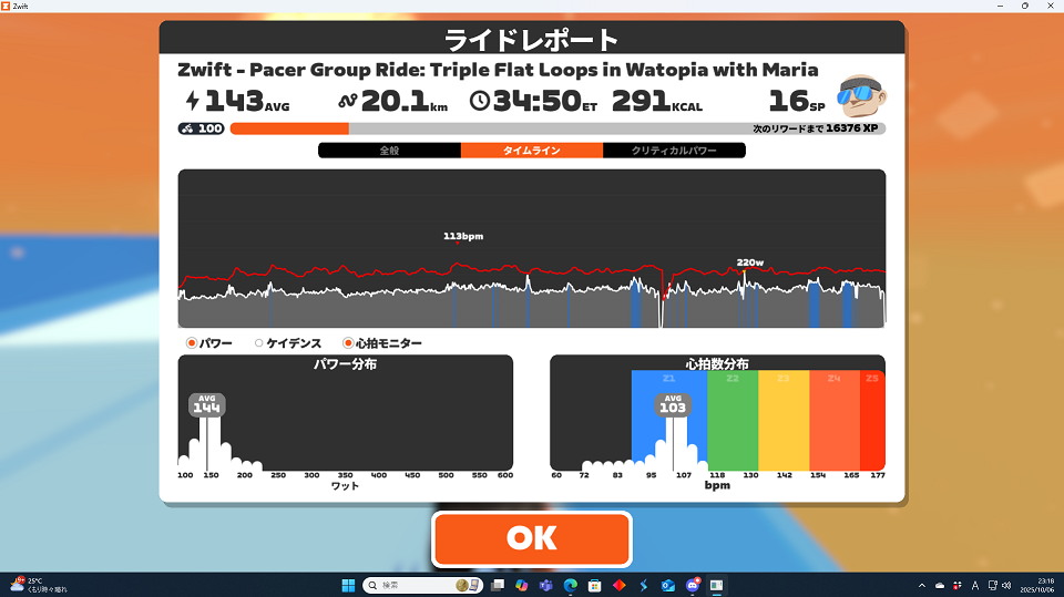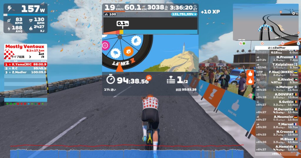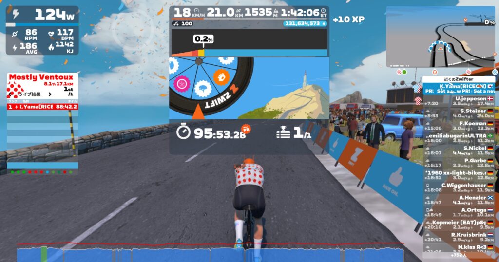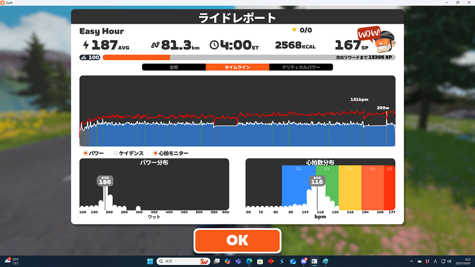 インナーなら普通に漕げるわ。インナーの負荷に合わせるためにとりあえずトレーナー難易度を上げた。