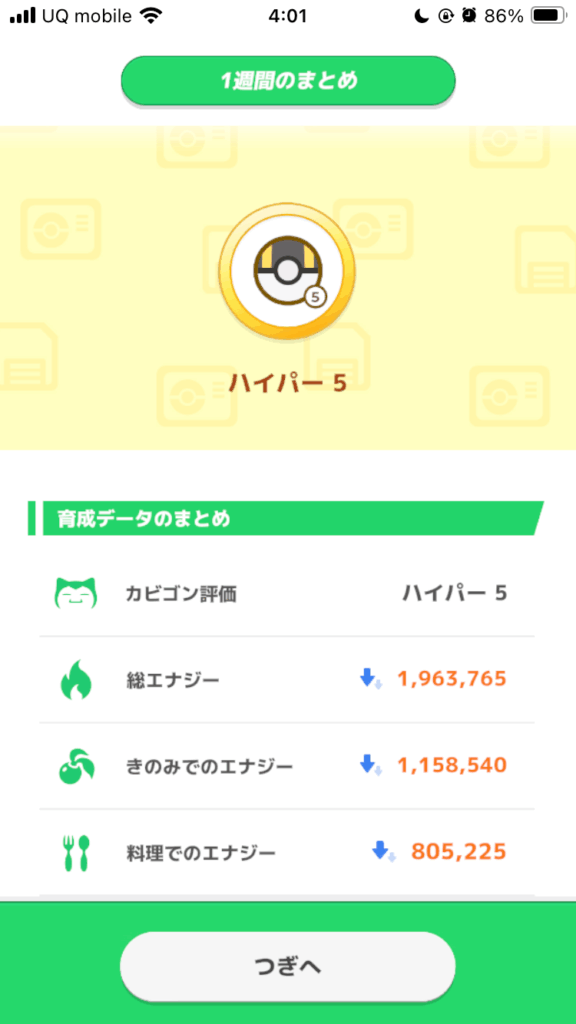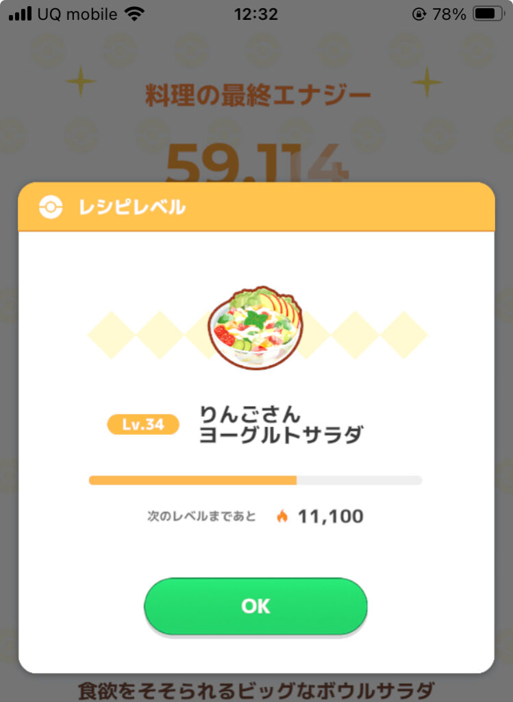 今週はきのみ、料理ガチャの運が悪くて厳しかった。FB35%とそこそこ上がってきて、料理1.25倍のバフがあってこれなので厳Cわね。料理はムラッ気チョコミートサラダが主力で、それすら備蓄分なしでは回っていないような状況。食材+1なのにw