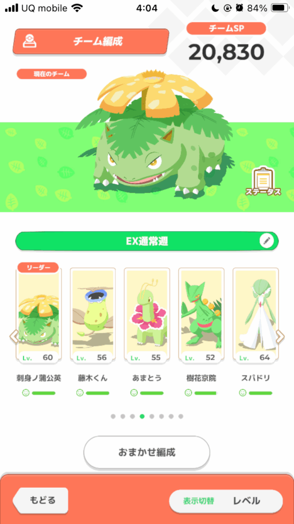新戦力の方は…このニャオハはいいかも。食Mおっとり。ポテト要因はABウツボットとABガルーラしかいないしサクッと30まで上げれば使えそう。所持数アップが先に来てくれると嬉しかったけどしゃーない。