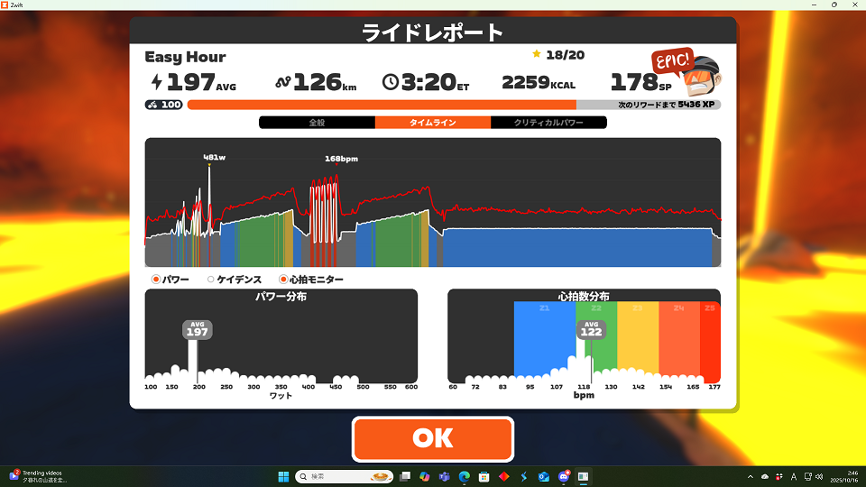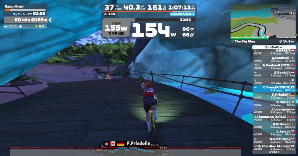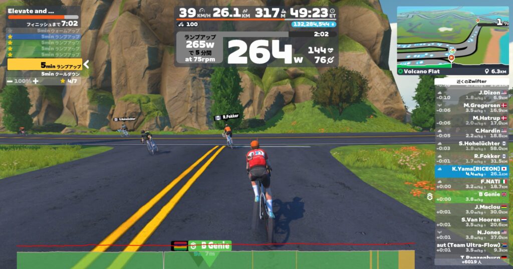 ログを確認したら指定パワーよりほんのちょっと低かった。多分そこに上がるまでに少しラグがあるからだと思う。これはしゃーないな。ERGの弱点はショートインターバルだろうな。1分ならそれほど問題ないけど。うん…思った以上に問題ないw