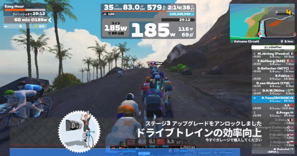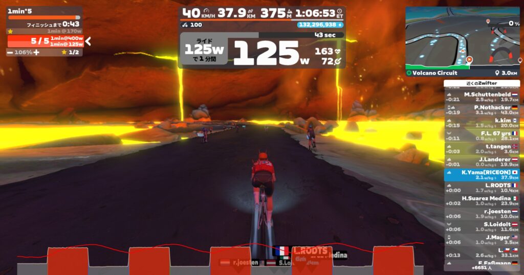 ERGでダンシングするときって、わざとケイデンス落としていい感じになったところで腰上げて~ちょっとケイデンス上がってきたところで~座るみたいになるよね。強度が低いとお股がしんどくなるよね。笑