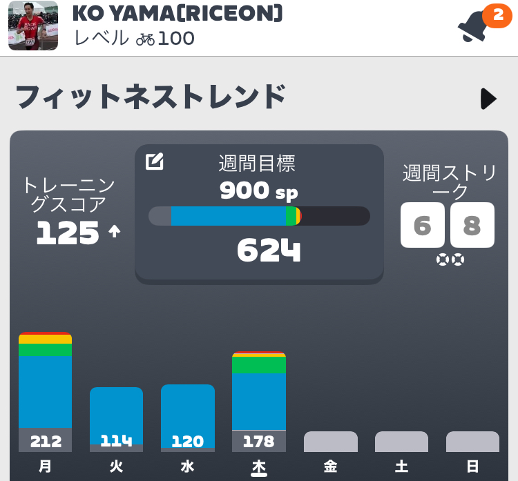 今週は明確なリカバリ日をとっていないけどこれぐらいなら問題ないな。万全とまでは言えないけど。
