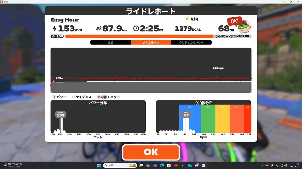 リカバリ強度も脂質酸化トレの一部。どれくらいの長さにするかは試行錯誤ってことで。100kmいってもよかったけどこれぐらいで。寝よ。( ˘ω˘)スヤァ