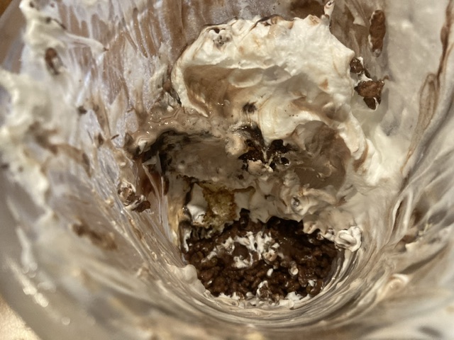 このクランチ的なものの下に、チョコムースとクリームの間みたいな液体?が待ち構えていました。最後までしっかり甘いぜ!w