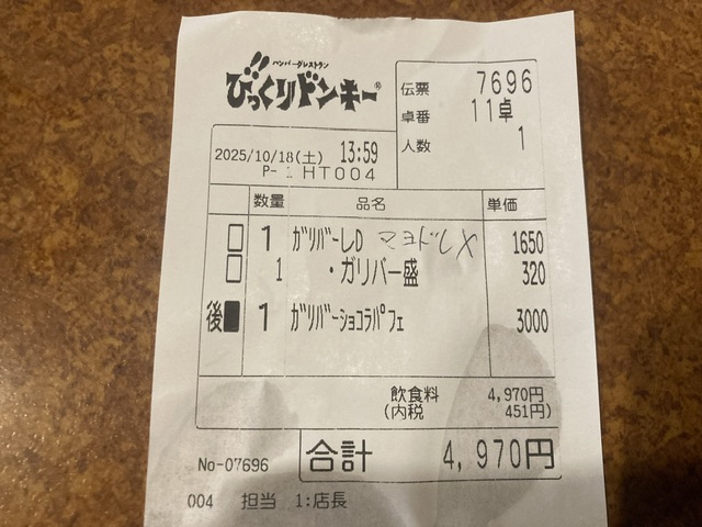 びっくりドンキーさんはやさしい方です。2年前にガリバー祭りしたときもそうでした。寿司とかはガチのマジで〇ぬので一生やりたくないです。笑