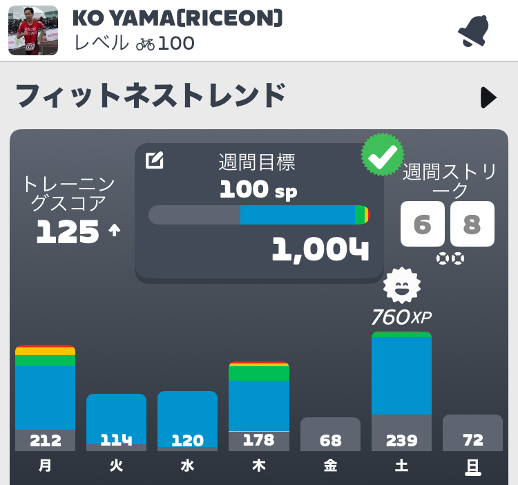 ガッツリ高強度をやるならまた別ですが、ベース期のトレーニングは今週のようなルーチンでいける気がします。金と日はリカバリ強度、特に日曜は乗った後の行動でしっかりリカバリーして週の疲労をリセットしたいところです。日曜に余計な用事が入ると厳しいかも。子どもと遊ぶパパママはスゴイ。
