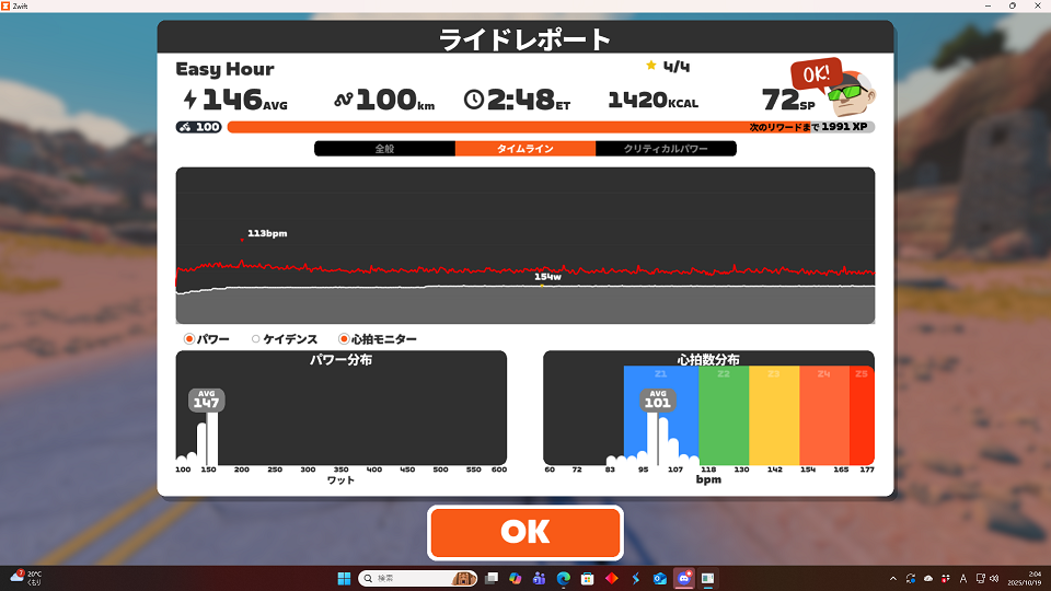 実走してたくさん食べたらまともに眠れないのは自明の理。目が覚めたら安静時心拍が56。高すぎ。通常時から+10ぐらい。