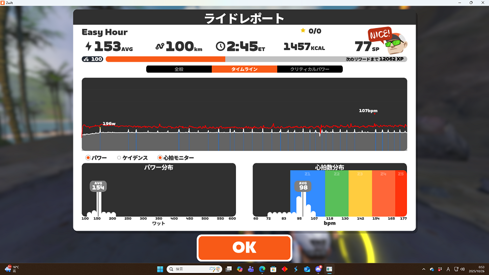 アレあまりアテにしていないけど、(主に自分の生活リズムのせいで)やっぱり実走だと数値以上に疲れるよな~。リカバリータイムが長めに出ているときはともかく、短いから大丈夫ってわけではないのよね。