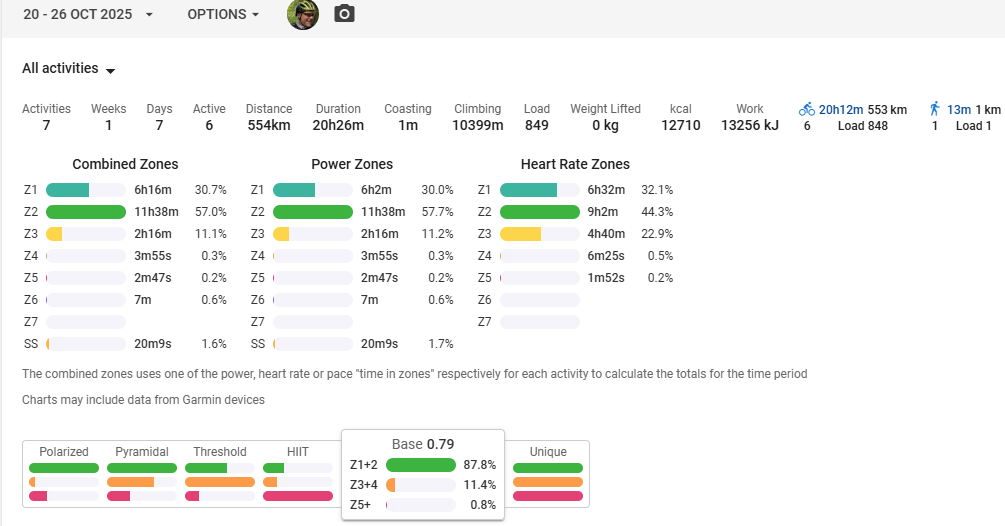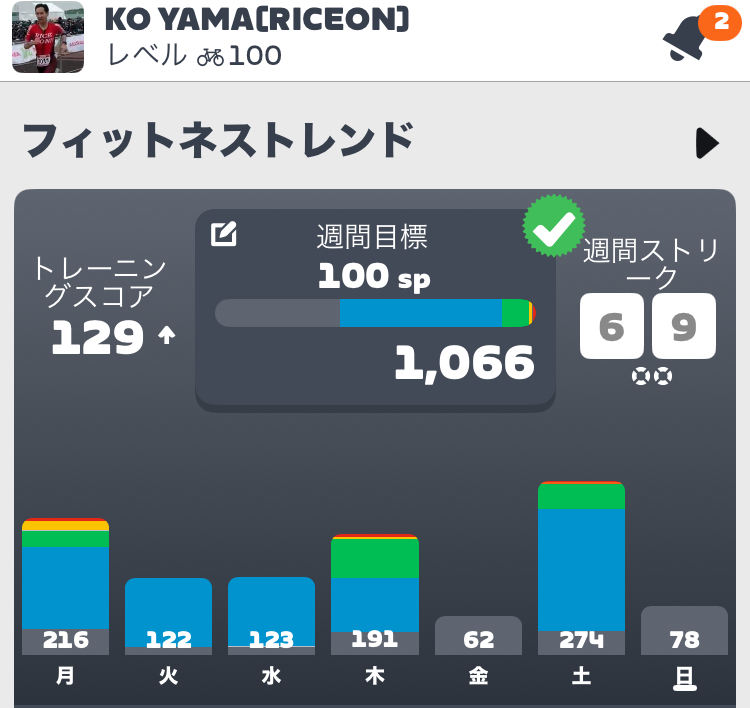 火、水を完全にリカバリーにはせず低めのZ2でつないで、木曜に中強度を入れているわけですが、ここの数値(P/Hr)は先週の同じ曜日より改善していたのでそれなりにうまく回せているかなと思います。
