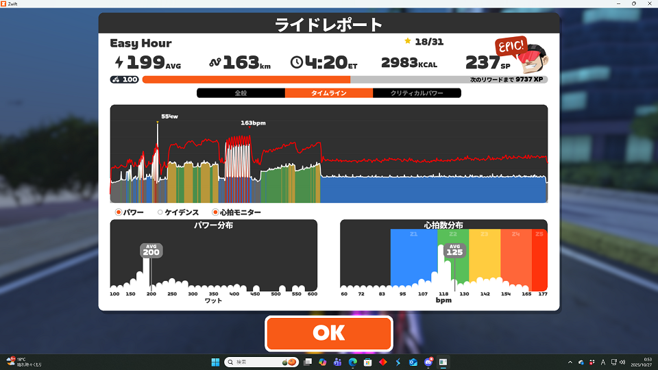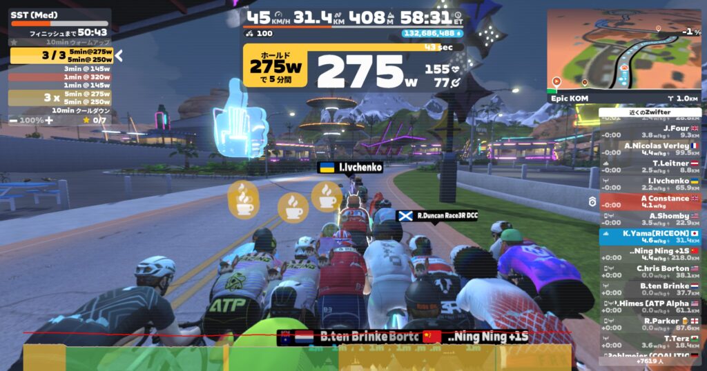 14時半に目が覚めたのでなんとか歯を磨いて寝た。ということで完全に日曜の夜練になっているけど気にしない。ガーミンのリカバリータイムが45hでも気にしない。笑