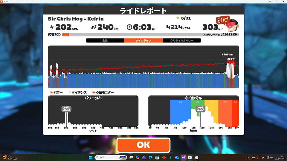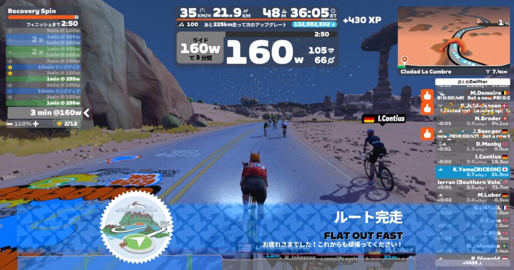 Cocoさんに移動して240kmまでクールダウンして終了。