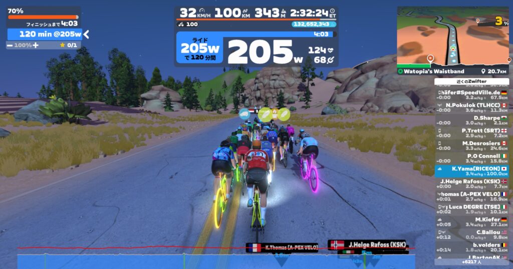 テキトーに身体温まったので、そこそこ踏み目のZ2。Jacquesさんのところで205Wあれば千切れないっしょ(60kg)。