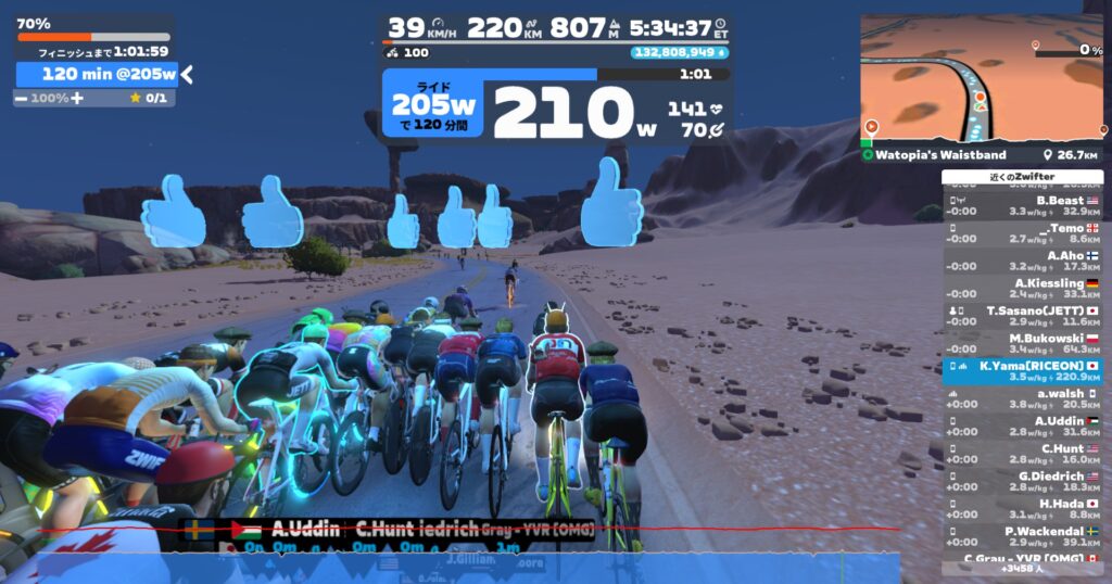 チャットしてたら200kmいってた。だいぶ気が紛れた。AYAさんサンキュー!