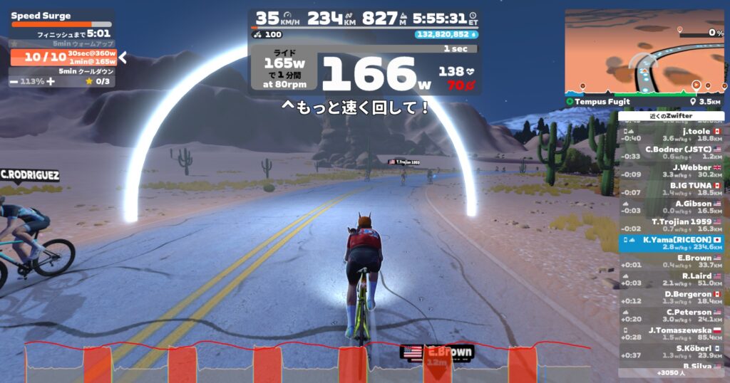 tempusにテレポしてサージ10本。360W。1本目はサボった(320W)けど。笑