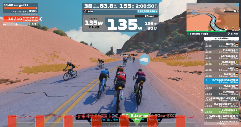 ちょうどいいペースだわ~。Jacquesさんでもケッコー速度出ているね。平均25min/Lap切る。