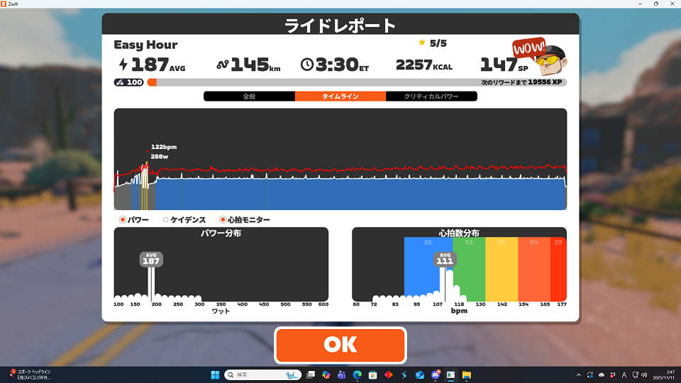 TSS300(5.5h)の翌日でもこれぐらい動けるようになったのは成長なのかな。1ヶ月前ならZ1一択。もちろん高強度での300なら無理だけど。