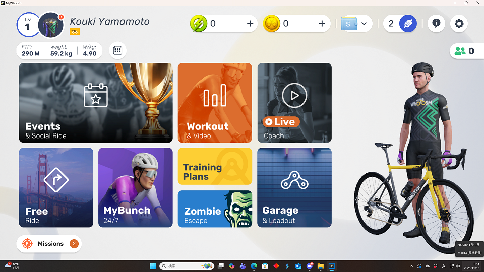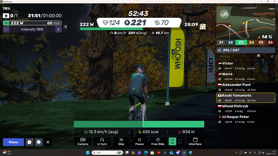 ちなみにライドが終わってからZwiftを開いてみたらちゃんと起動して直っていた。ざけんなwww