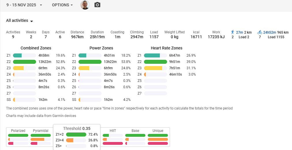 以前(昨年末)風邪をひいて、治りかけで全力走をしたりZ3~SSTでTSS300みたいなライドをしたらオバトレにトドメを刺してしまいエライことになったので、ネックルールに従いつつ慎重に低強度で様子を見て体調を判断しました。まあそのときは発熱もして2~3日会社を休むレベルで体調が悪かったので今回の方がだいぶマシでしたが。