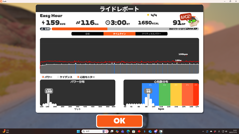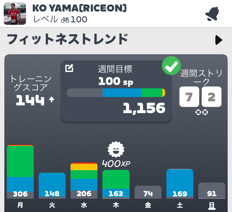 ベース期はレスト週いらなくね?とか思っていましたが、週とは言わないまでもたまに2~3日負荷を落として体調万全!というタイミングを作るべきだなと認識を改めました。結果的には土曜減らしたので元気になったw