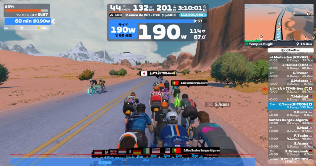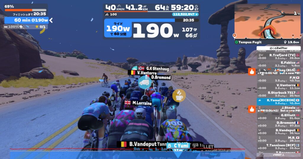 脂質酸化といってもこの長さだとさすがに補給あり。C20g/hぐらいかな(乗る前入れたらもっと多い)。