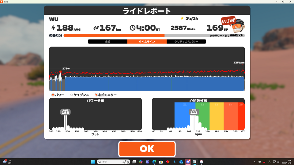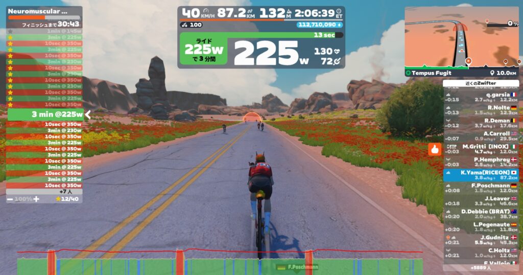 やっぱりこのルーチン、このタイミングでのSSTは脚の重さを感じるけど耐え。スクショ忘れた。30min。