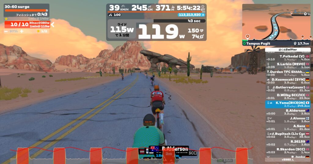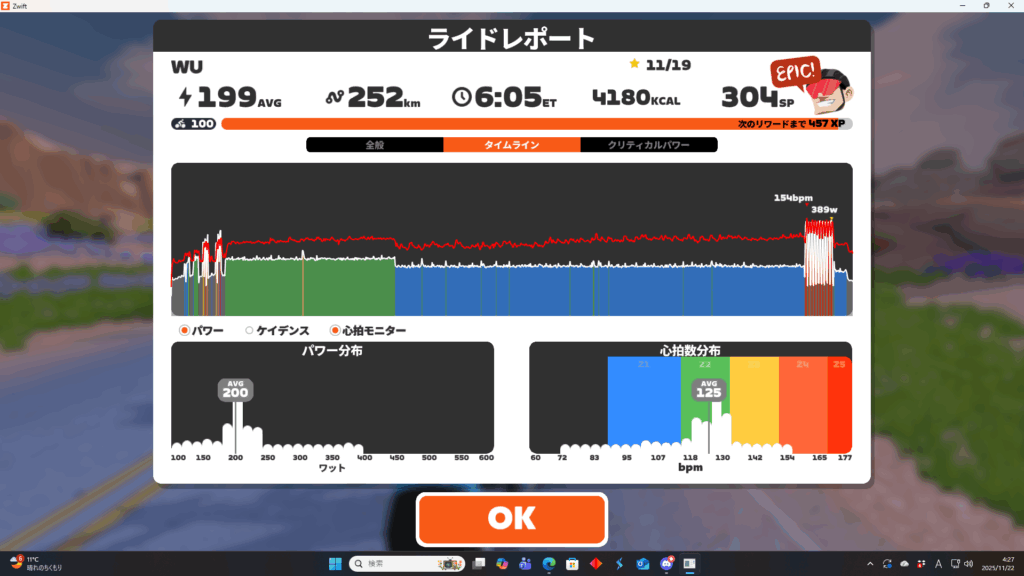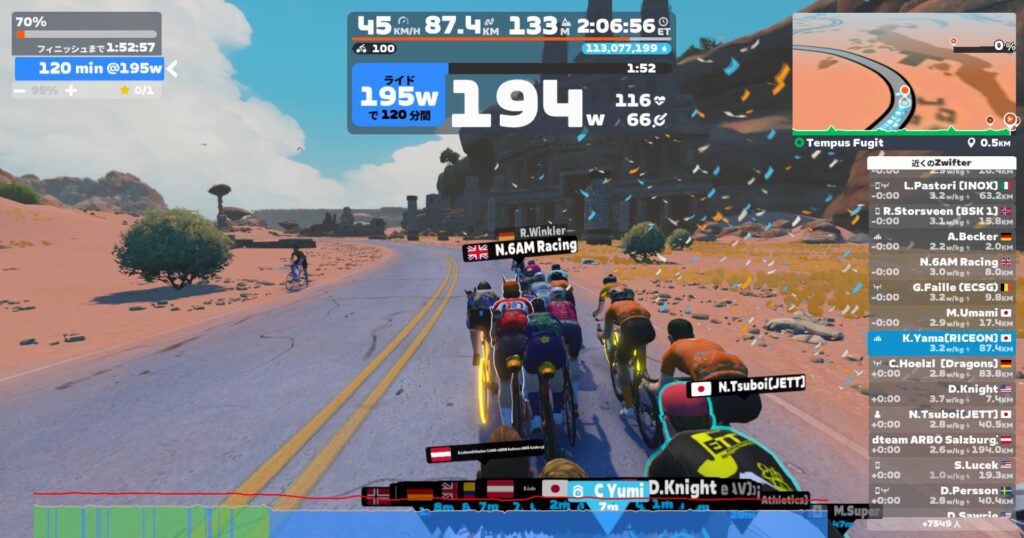長く乗る予定なので無理せず90minで終わり。で、Z2に切り替え。