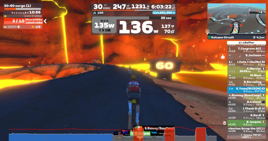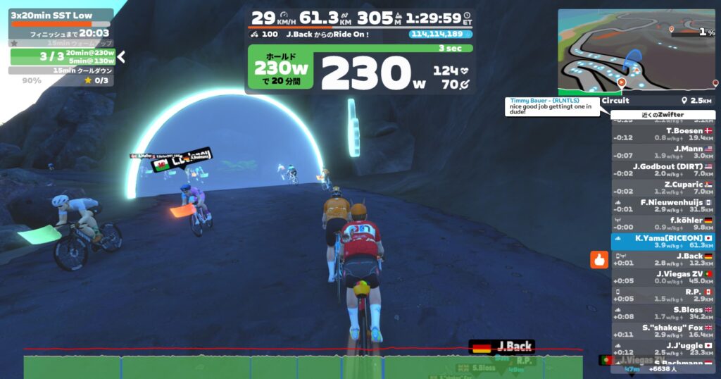 30minアップして、テンポ(低)。今日は1hにしておこう。
