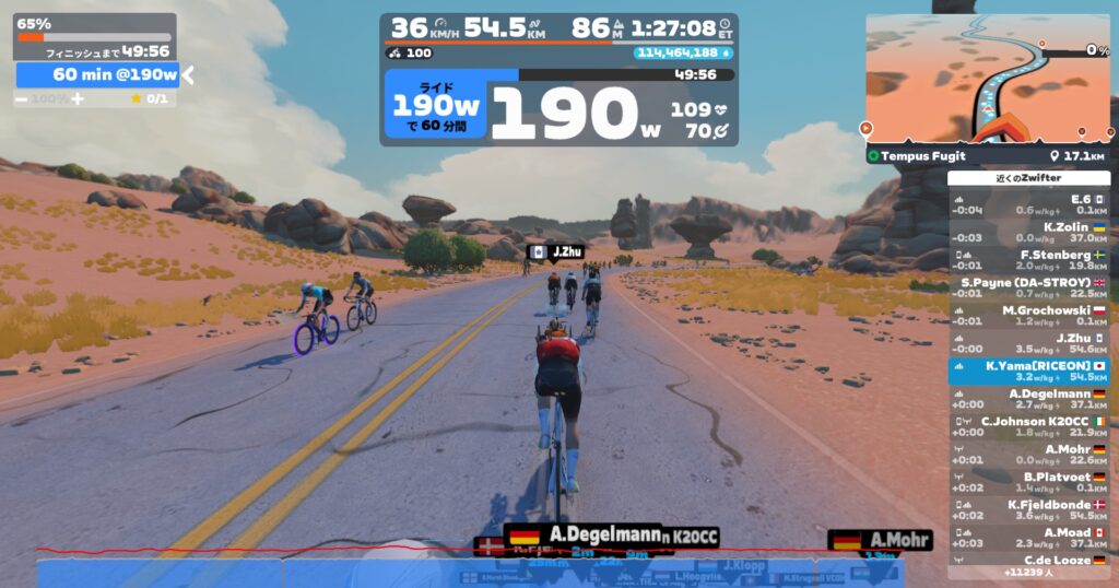 リカバリサンデーの後にこの程度だとめっちゃラクなんだな。こんなにラクだったか。補給も序盤から40g/hのペースで摂って最後までラクラクで快適サイクリング。
