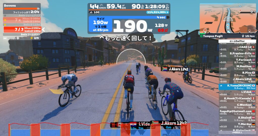 体感的には先週よりマシなんだけどな。やたら喉渇いたのでただの脱水という説もあるけど30min1本にしておく。ドリンクガバガバ飲んでSevensに切り替え。