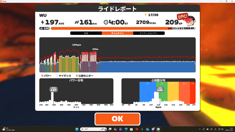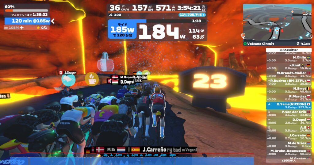 EFは特別いいというわけではないけどね。体感的にかなりラクで、ダンシングのケイデンスが高めで心拍がちょっと上がりやすくなっていた印象。