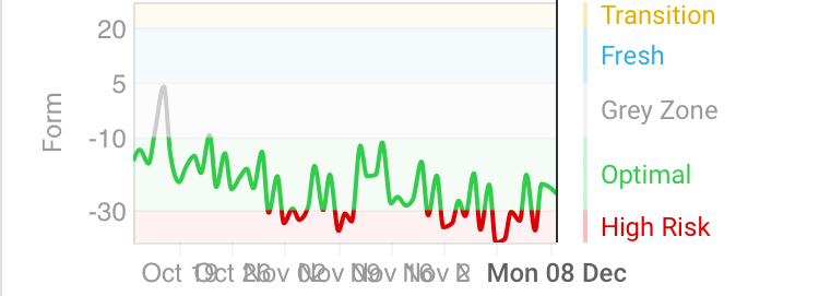 水~金は量減らして深いところの疲労を少し抜く意識でいこうかな。久しぶりに一旦TSBをゼロ付近にしようか。とりあえず明日はだいぶ軽くして、明後日は様子見ながら。