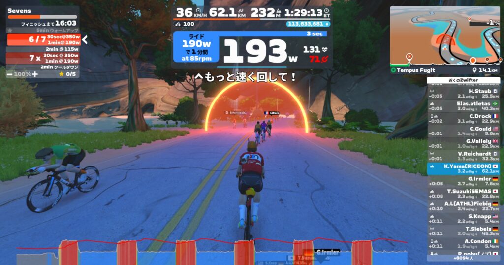 あとは無理せずZ2の低いところでサイクリング。