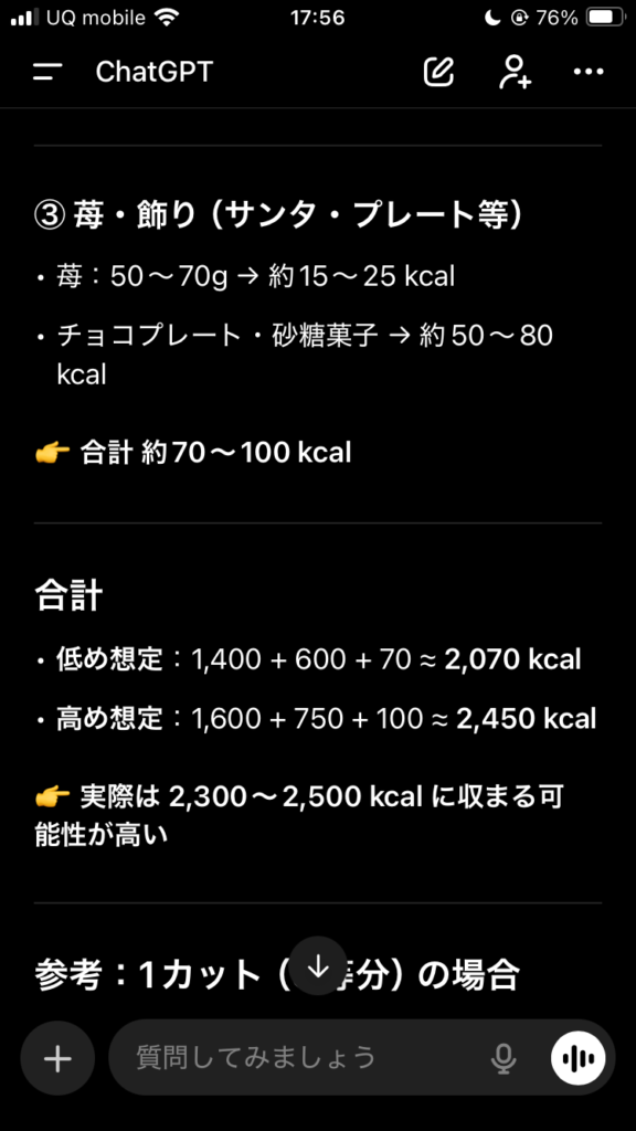 チャッピーさんに聞いてみた。これカロリーどれくらいあんの?って。