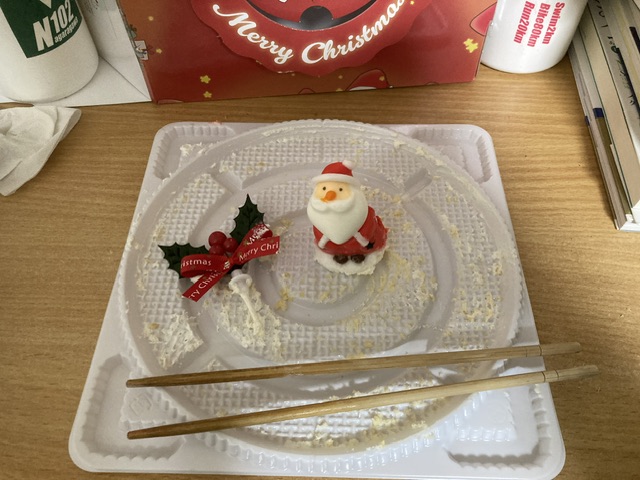 昨日も言いましたが、毎年会社で支給されていて誰かにあげているクリスマスケーキの引き取り手がいなかったので、初めて自分で持って帰ってきました(転職して4年目)。現物見たことすらなかったんですよね。