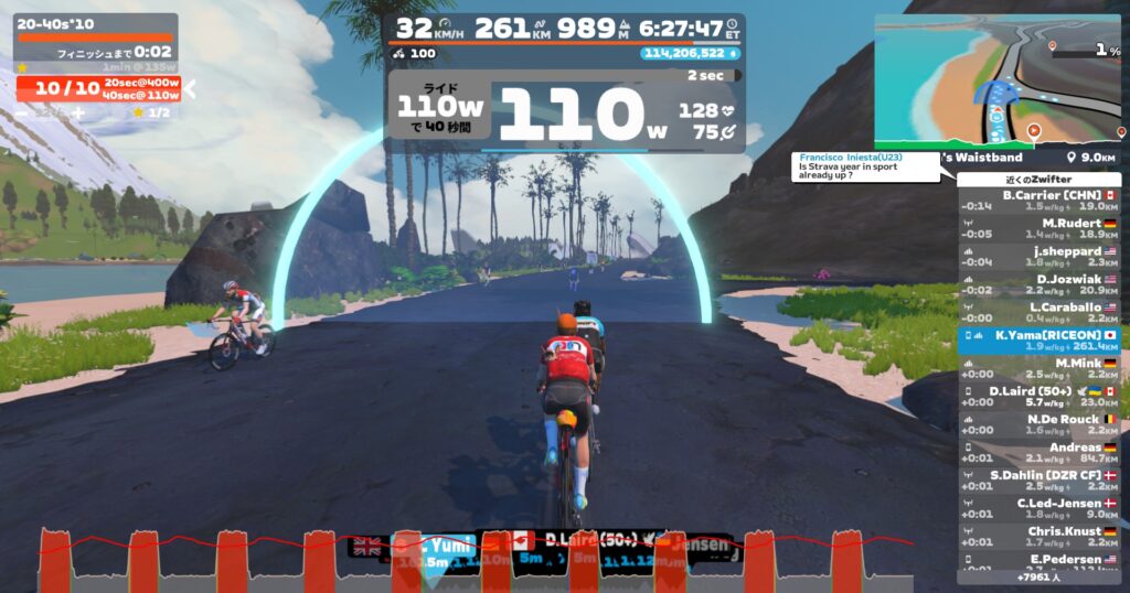 やっぱり心拍が戻ってこない。この強度なら100以下になってくれないと…。