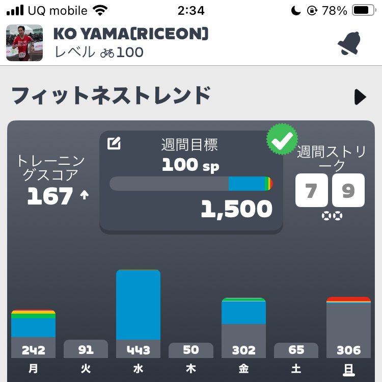 通常週は今週のような乗り込みを基準にするのは絶対にダメ。バグった頭をリセットして、しっかり睡眠時間を確保することを優先するようにしましょう。