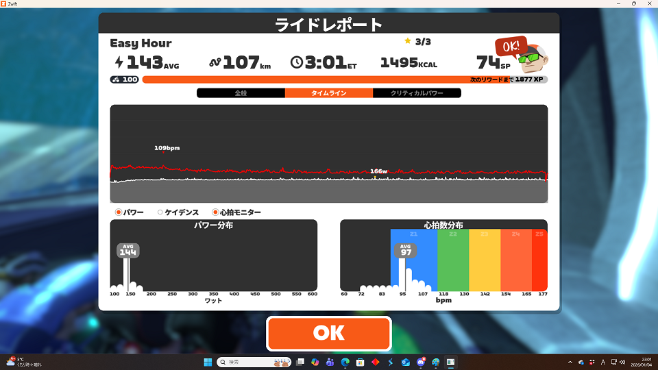 低強度に適応しすぎて乳酸が溜まる強度になったら途端にクソザコ化している感じがするゾ?まあこれからってことにしておくか…。