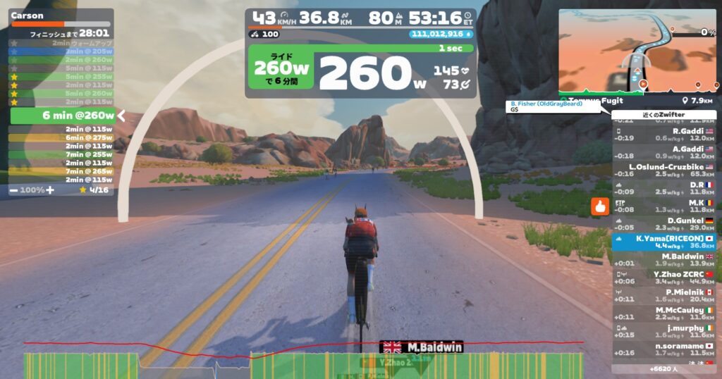 やりすぎてもいけないので全ブロック260W(最初は255W)に調整した。日・火と高強度やってるからね。