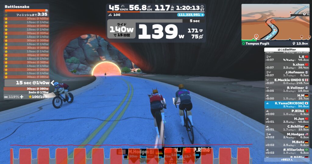 補給はだいたいC60g/hのペース。マジでおはぎがコスパ最強すぎる。通勤路にラムー欲しい…w
