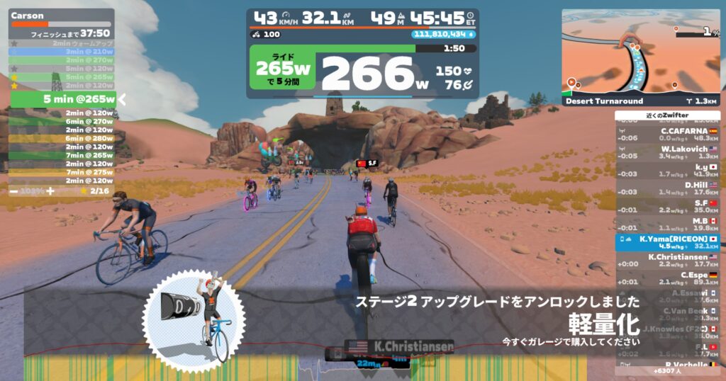 今はSSTにフォーカスしているわけではないので、長く踏むより疲労しにくいカーソンあたりでほどほどにやるのがいいかなと思っている。この辺は全体のバランスを見てだよね。もっと低くてもいいぐらい。
