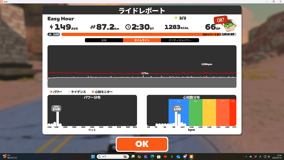 逆に言うと昨日の状態でカーソンやってあの程度(の心拍)で済んだんだから強くなってんじゃね?w(ハナボジー←おい