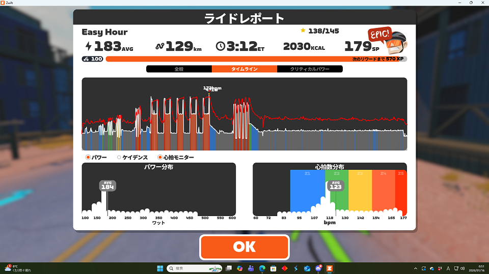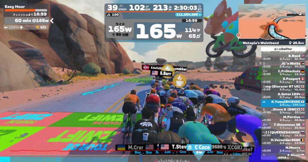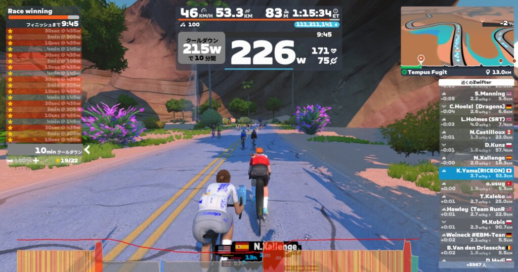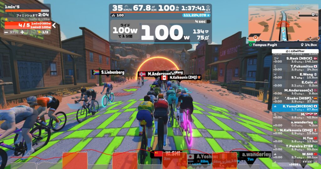 調子よければ5~10W上げた方がいいかもしれないけど、今日はこの設定でだいぶギリギリ感あったな。なかなかいいメニューな気がする。