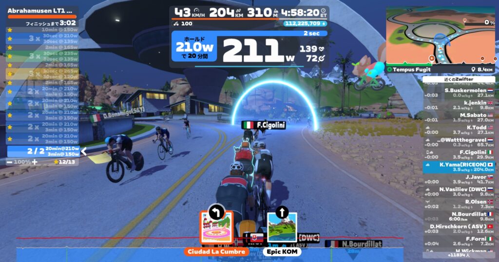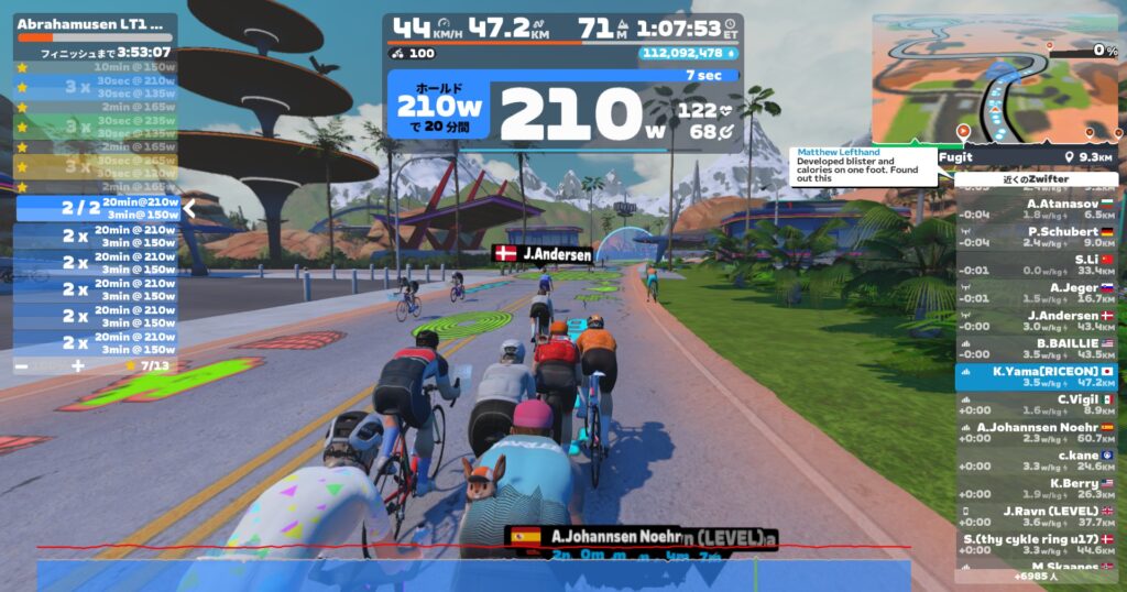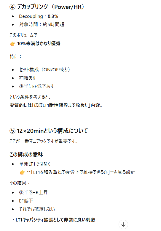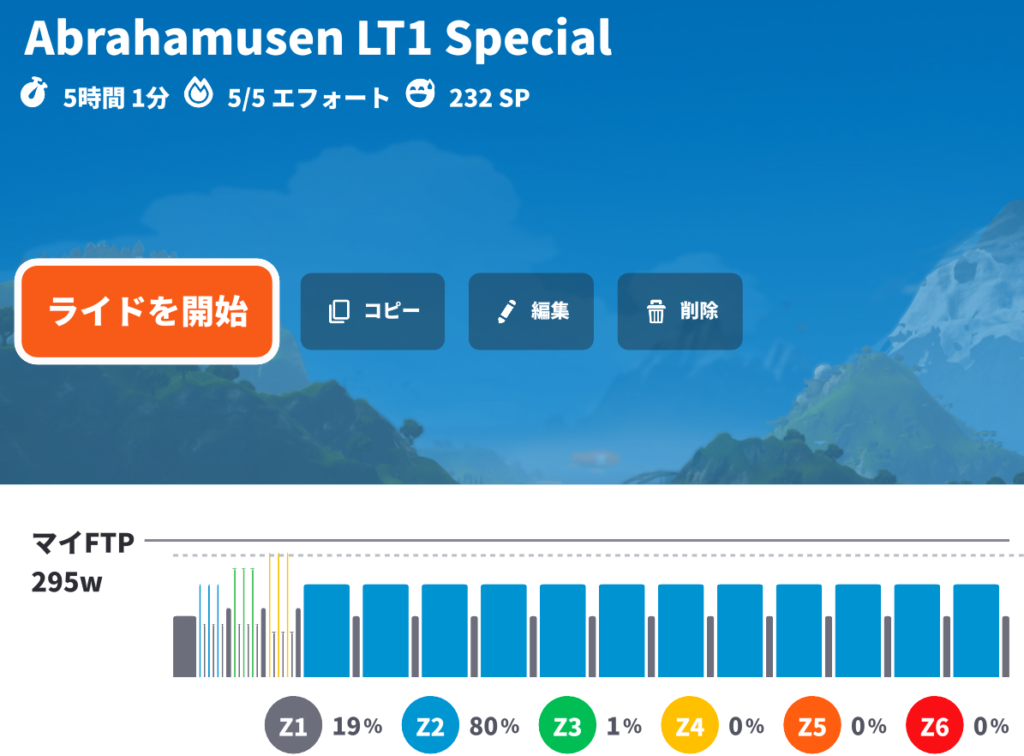 アブラハムセンは世界トップのハイパーエリート選手なのでLT1がFTP比で88%とかいう驚異的な数値らしい。多分このメニューを85%とかでやることになるんだろうけど、そんなのをマネしたらどう考えても別物のトレーニングになってしまう(し無理無理カタツムリw)。